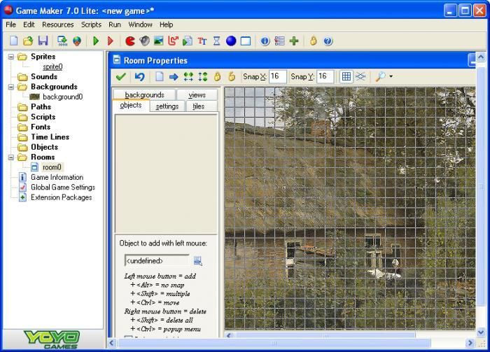 If you want to make your own games, this is the program to try first. Game Maker installs quickly and launches automatically, starting up by generating a new project. A basic project includes sprites, sounds, background, paths, scripts, data files, time lines, objects, and room features, as well as game information and options, all of which you can configure freely.Â
