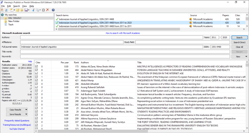 Publish or Perish (PoP) is a Windows ( 11, 10, 8.1, 8, 7) software designed to help academic scholars retrieve and analyze citations. It’s a comprehensive, feature-rich tool that uses several data sources like Microsoft Academic Search (MSA) and Google Scholar (GS) to gather raw data. It then analyzes and presents this data via different metrics like Hirsch’s h-index, contemporary h-index, Egghe g-index, age-weighted citation rate, etc.